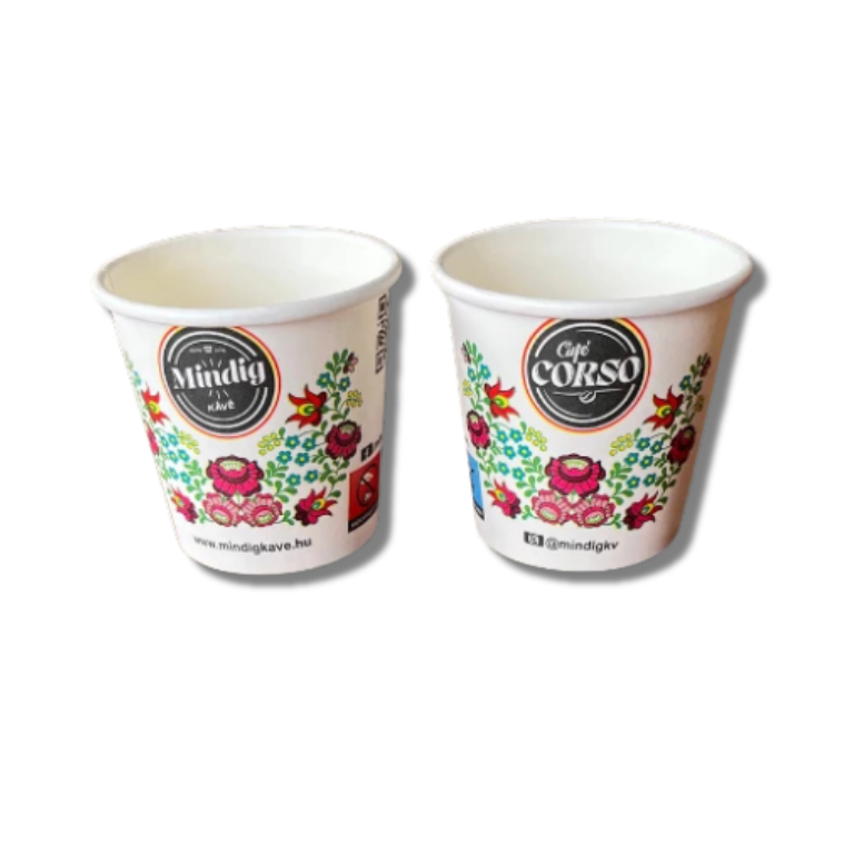 A papír alapanyagból készült poharak három méretben kérhetőek: 100 ml, 280 ml és 350 ml.